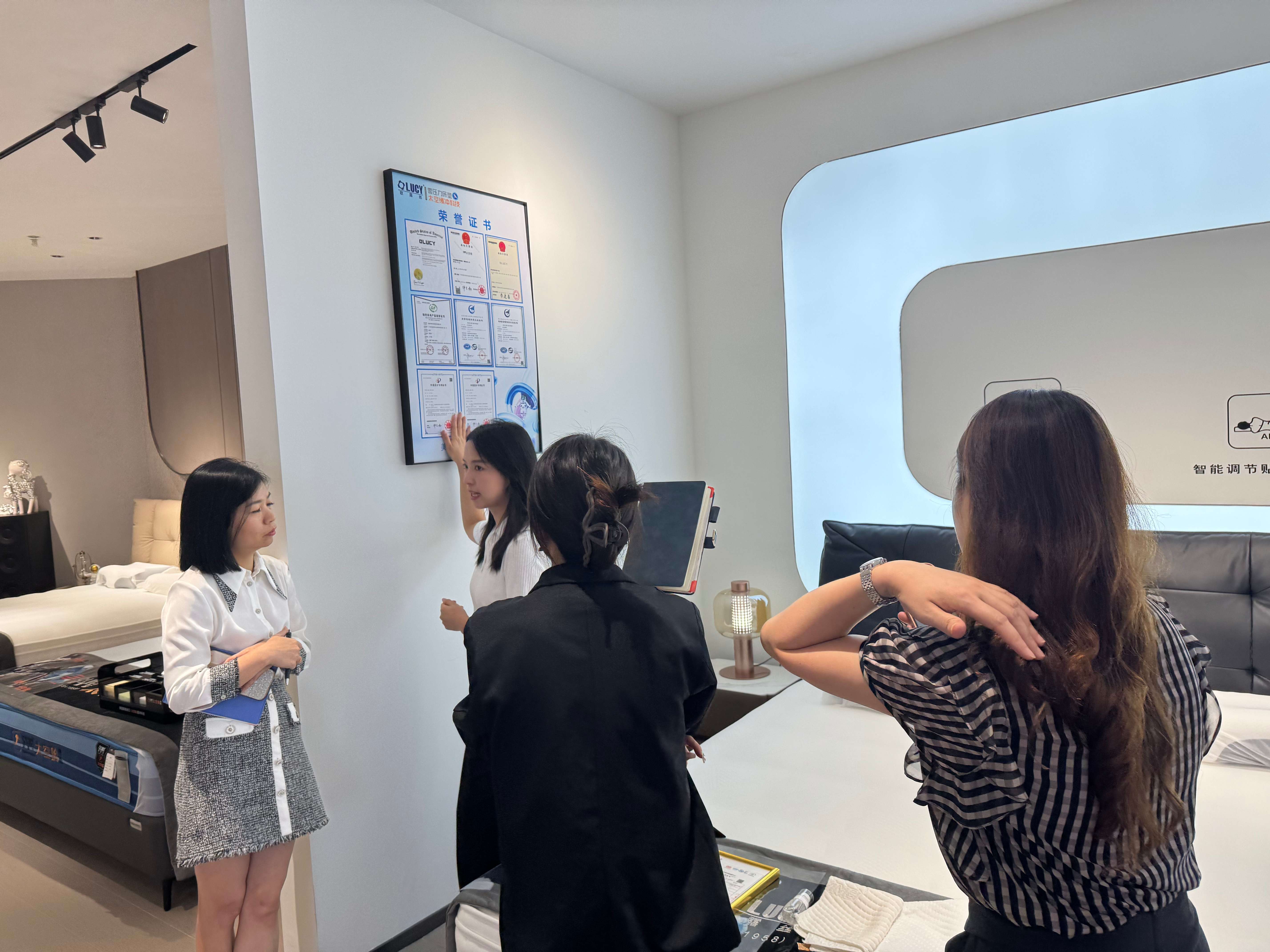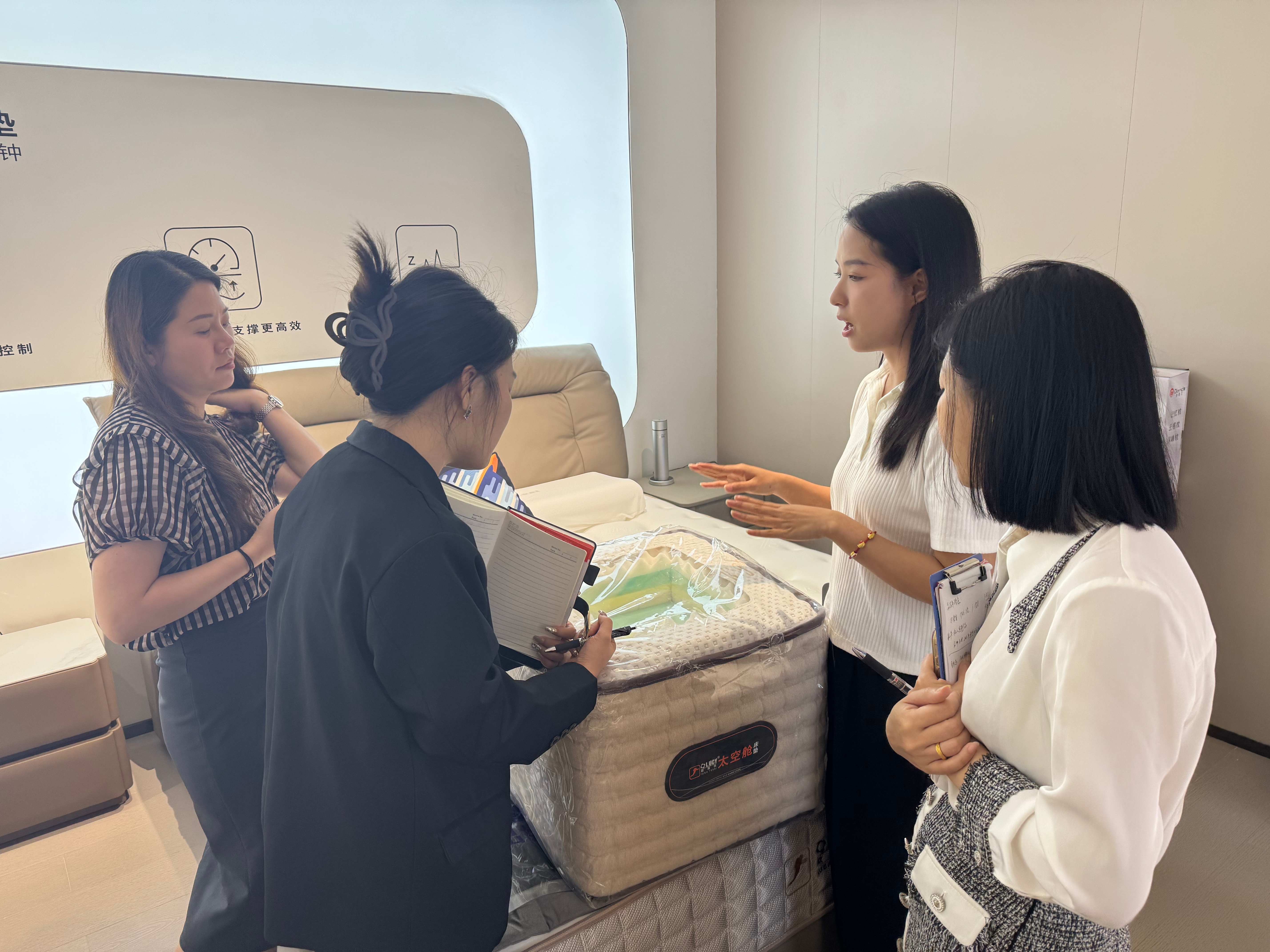 招商总监和培训老师来到珠海世邦欧露丝床垫品牌专卖店做开业指导店面布局,培训专业产品知识,实战演练助力经销商提高终端销售。