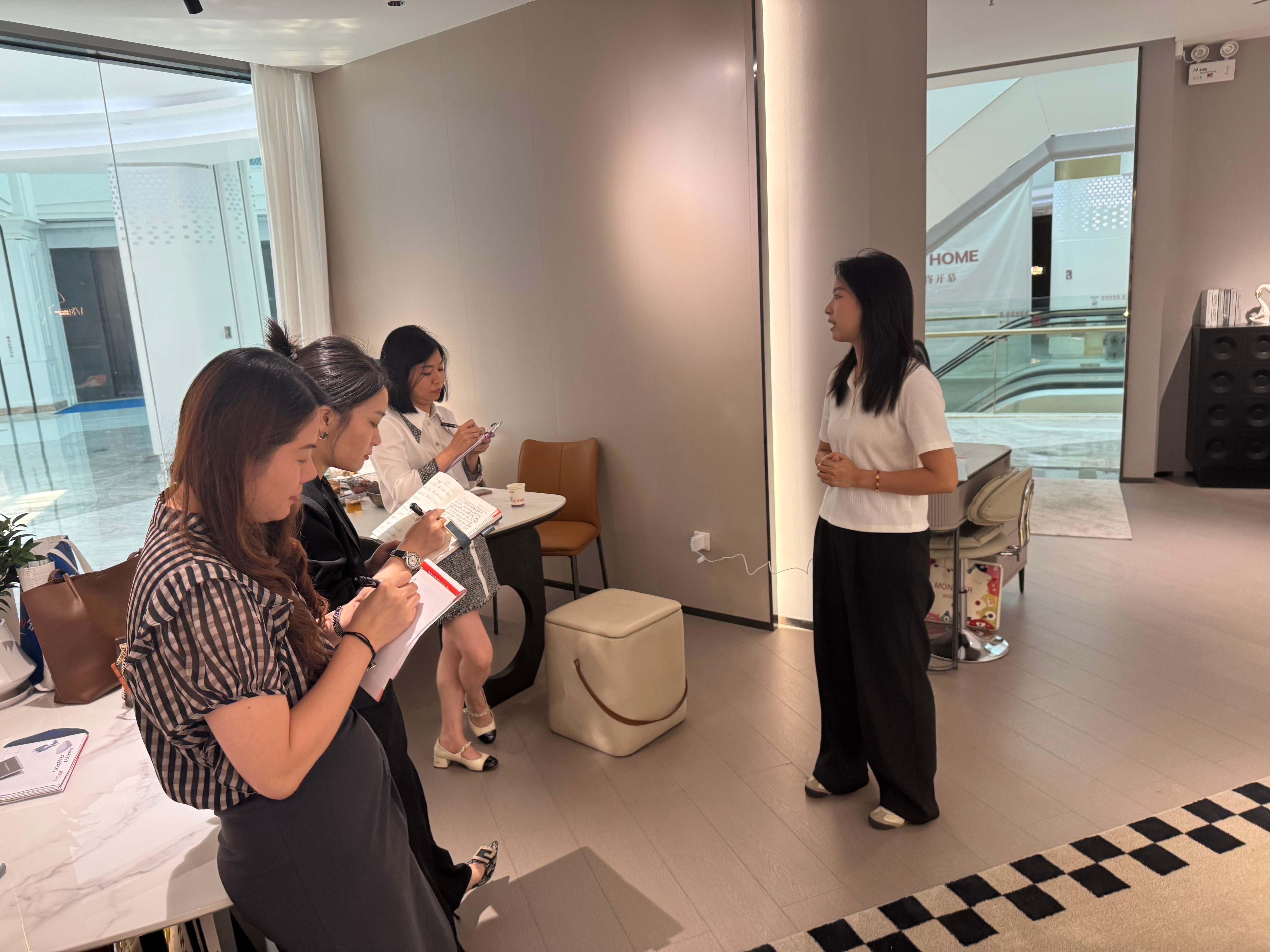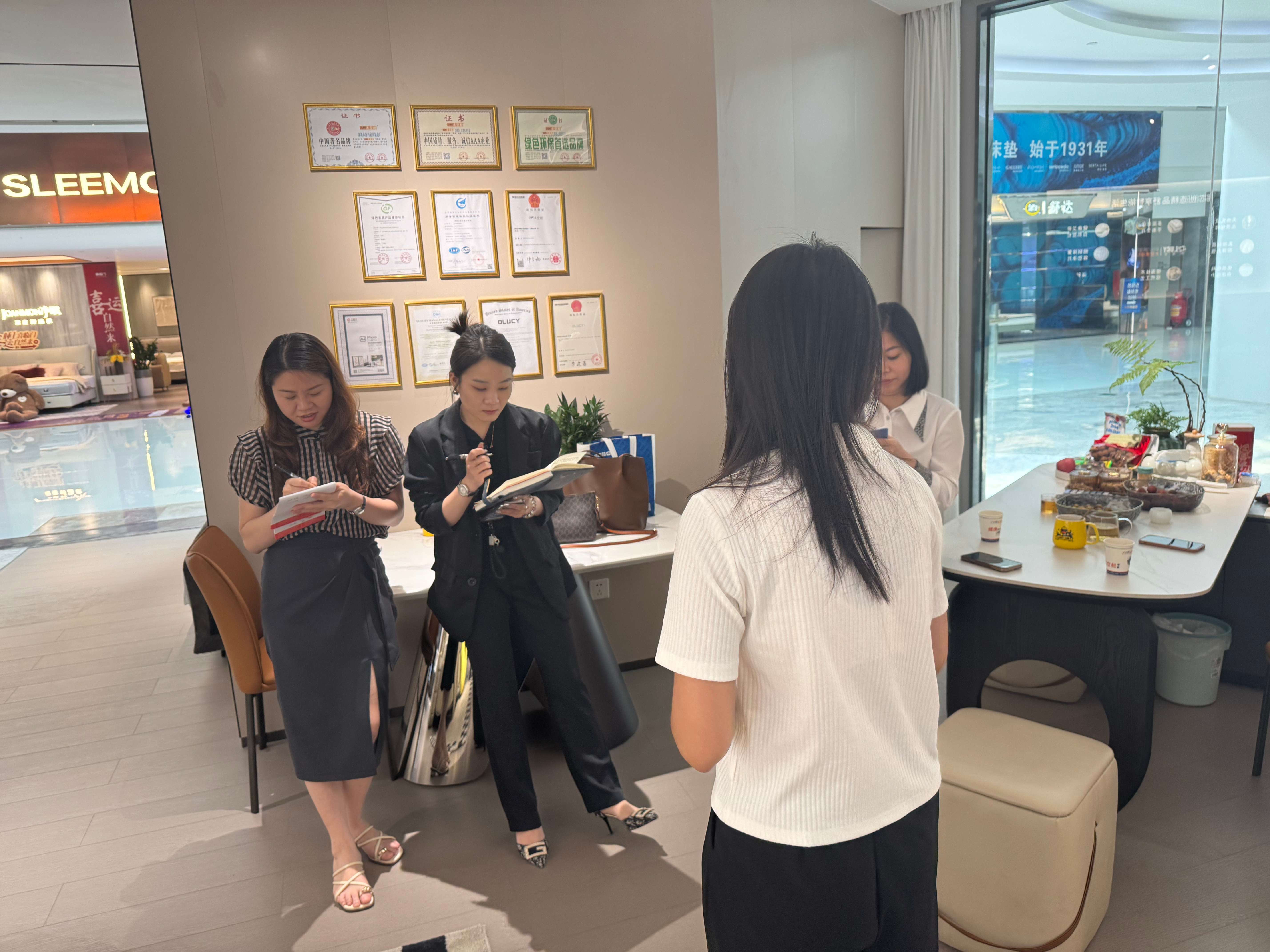 招商总监和培训老师到珠海世邦 欧露丝床垫品牌专卖店给店面团队培训现场不仅根据门店的不同化需求制定了丰富的教学课程,更是结合了实际案例和门店现场情况进行了生动形象的讲解,培训内容深刻,理论与实际相结合。